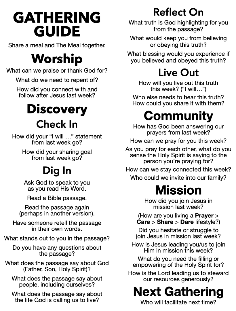Devote yourselves to joining Jesus in discipling others toward Him by living a Prayer > Care > Share > Dare lifestyle.