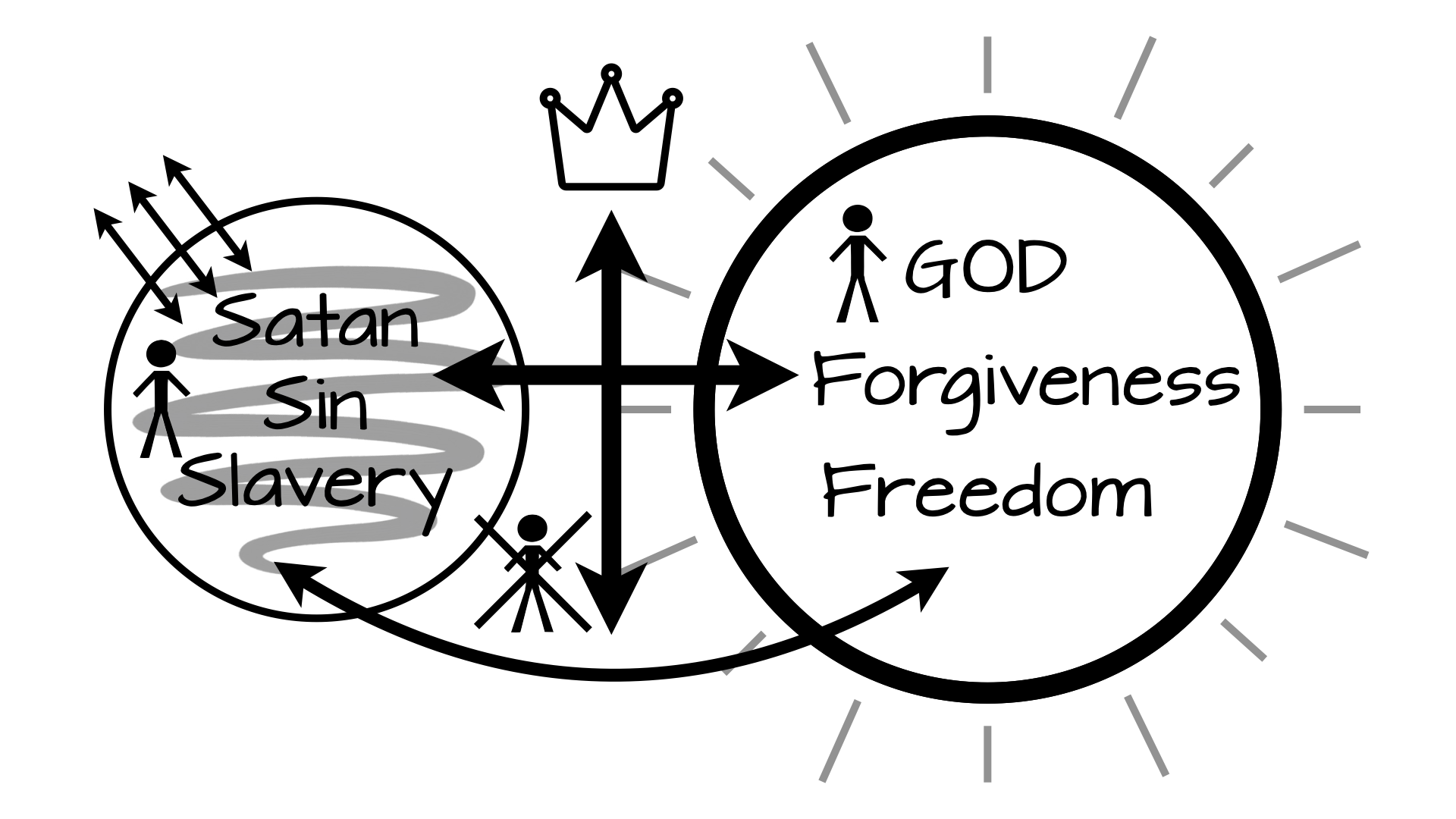 We would like to think that even though we haven’t committed our lives fully to Jesus and so we don’t really belong to Him yet, at least we’re not under the rule of Satan. Or even though we’re not in the Kingdom of Light, at least we’re not in the kingdom of darkness. We see ourselves as somewhere in between. We’re just doing our own thing. But according to this passage, to do our own thing or to be our own king or queen actually means Satan is our ruler and we are captives of his kingdom. And this is everyone’s default. Everyone is born into the kingdom of darkness because everyone is a sinner by nature and by choice. As the Apostle John says, The whole world is under the rule of the Evil One.